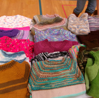 Thanks to Dr. Jami Pigg, the PE teacher, who shared the gym on her busiest scheduled day! Thank you to everyone who rolled yarn, donated yarn, knit and crocheted to create this rainbow of colors.